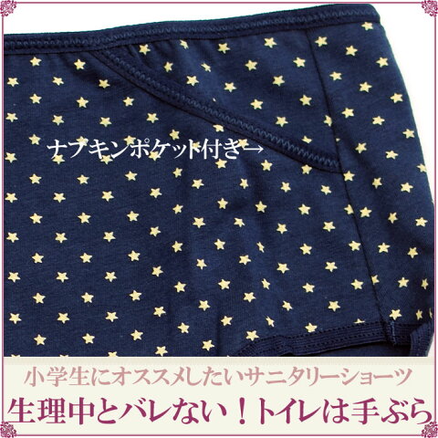 サニタリーショーツ ジュニア 生理用ショーツ 小学生 の説明 かわいい星柄の子供用の羽根つき多い日昼用です。